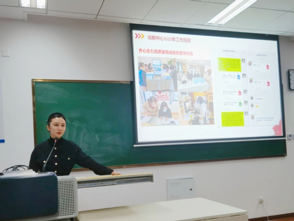 幼教中心主任陈慧云对2023年的工作和成绩进行回顾,对幼教中心全体教职工的辛勤付出表示肯定。新的学期,她提出幼教中心要坚持以习近平新时代中国特色社会主义思想为指导,贯彻落实党的二十大精神,牢固树立“质量为本,师生至上”的服务理念,重点实施“立德铸魂”“幸福提质”“业务赋能”“服务优化”四大行动,团结教职工锐意进取、共谋发展、乘势而上,以优异的成绩助力学校和集团的高质量发展。