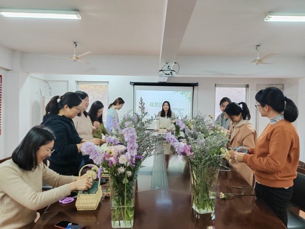 在史老师的指导和示范下,大家将修剪好的花束插入花篮中,朵朵娇艳的鲜花在女教职工们的巧手下摇身一变成了饱含意境的艺术品。活动后,大家不由自主地拍照,留下人与花相得益彰的精彩瞬间,心中的暖意油然而生,纷纷发朋友圈以表喜悦之情。大家在欣赏美、感受美、创造美的过程中度过了一个愉快的节日。