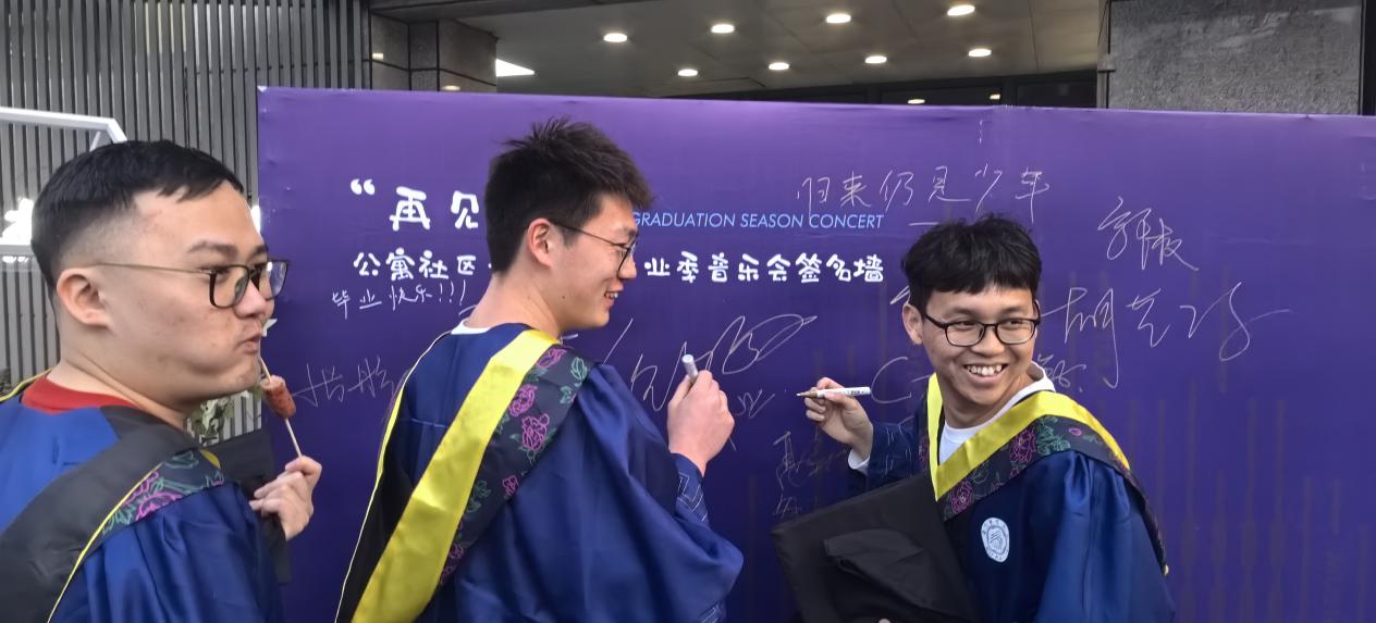 随着《test》《哪里都是你》《最初的记忆》等流行歌曲的唱响,这些记忆中熟悉不过的歌曲,将在场的同学们拉回青春时光里朦胧青涩的悸动、热烈真挚的友谊和诗情文艺。为了向我们即将毕业的研究生同学们表示最深的祝福和最美好的祝愿,公寓的阿姨和大叔们也精心准备了一个合唱节目《启程》。启程,是与母校作别,也是重新扬帆再启航,下一次的相逢,一定是带着难以言说的喜悦和期待,“就在启程的时刻,让我为你唱首歌……”跟随着音乐摇摆,同学们手中挥舞的手机闪光灯,如夜空中的点点繁星闪烁,将现场气氛推向高潮。