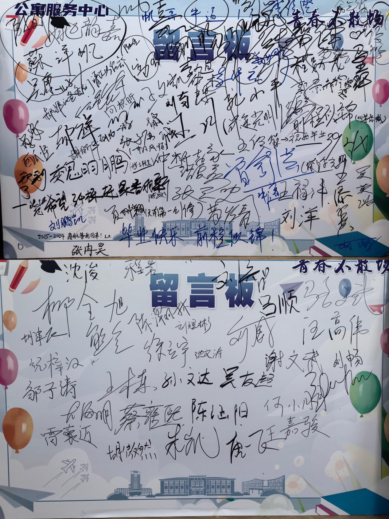 毕业生们纷纷在留言板写下告别校园的最后一句话与签名。