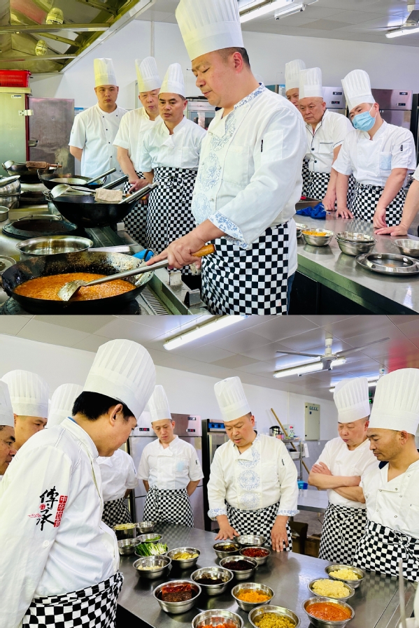 此次培训以水煮料和酸汤料制作为主题,中心菜品研发部总监祁军担任讲师,对两种汤料制作进行了详细讲解和示范。