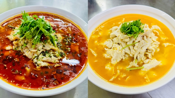 培训过程中,参培人员从原料选择、制作流程、运用技巧等方面,共同探讨水煮料和酸汤料的制作和使用。在掌握了水煮料与酸汤的制作方法后,培训进入如何将这些调料运用于烹饪的实操环节。祁军通过现场示范,将水煮料和酸汤料融入水煮肉片和酸汤鸡片制作,让厨师们深刻理解了调料与食材之间的奇妙融合,通过食材的合理搭配和运用,使菜品口感更加丰富多样。