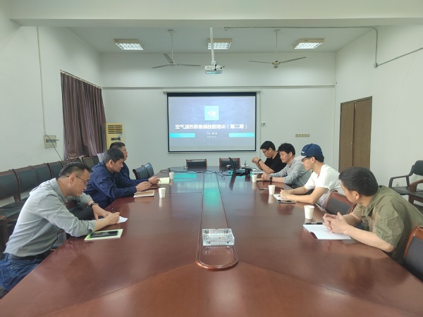 本次培训内容主要包括空气源热泵简介、巡视准备工作、现场巡视内容、故障诊断与处理方法、日常维护保养及安全注意事项等方面。培训过程中维保人员认真聆听,勤做笔记,遇到实际工作中的疑难问题积极提出,相互讨论。培训结束后,大家一起到馨园30栋楼顶现场操作演示,交流空气源热泵系统运行维护的经验心得。