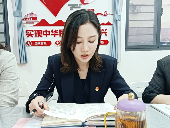 会上,陈慧云同志还对支部下一阶段的专题学习进行了详细的部署。明确了支部将通过自学、读书会、支部共建、“三个一”微党课、廉政教育、师德师风征文等形式开展教育学习,促进支部党纪学习教育深入、有效推进。强化党员深刻领悟“两个确立”的决定性意义、坚决做到“两个维护”,推动全面从严治党向纵深发展。