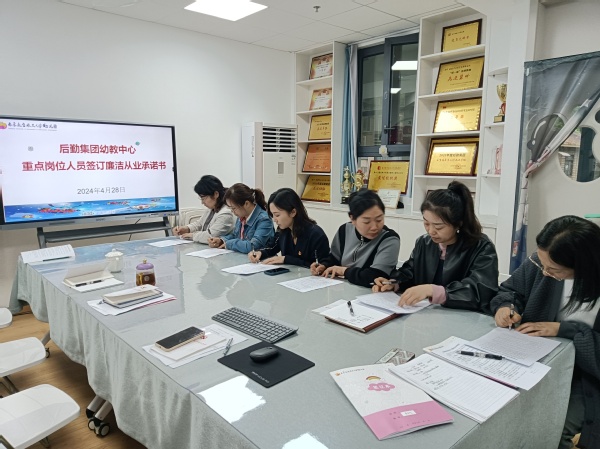 为了将《条例》学习融入日常,筑牢纪律防范底线,推进学习入脑入心,组织中心重点岗位人员签订《后勤集团重点岗位人员廉洁从业承诺书》,引导大家以承诺为指引,不断增强廉洁自律意识,落实廉洁从业要求,营造风清气正的育人环境,为办好人民满意的教育提供坚强保障,争做提升幼儿教育高质量发展的开拓者、践行者。