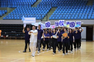 伴随着激昂的进行曲,后勤集团的八支代表队列着整齐的方阵,迈着有力的步伐,喊着响亮的口号,以昂扬的精神面貌依次步入会场。