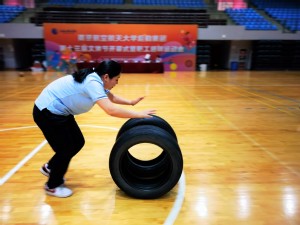 七个比赛项目分别为“同心携手”、“超级快递”、“齐心协力”、“奔跑旋风”、“快乐接力”、“平安行车”、“勇往直前”,项目设计集趣味性与竞争性于一体,融合后勤工作特色,充分考验团队协作。“同心携手”,运动员们手拉着手,象征着团结的呼啦圈沿着双臂腾飞,旋转在相交的手腕处,飞舞在欢乐的海洋中;“超级快递”,运动员们一字排开手肩相搭,构筑起小球的“传送带”,竞相比拼传递的速度;“齐心协力”,运动员们克服指压板的刺激,在飞扬的长绳中跳跃起舞;“奔跑旋风”,大家紧握长杆,奋力奔跑,尽情感受离心的酣畅淋漓;“快乐接力”,队员们围成圆圈,默契配合,体验排球的魅力,放飞青春的欢声笑语;“平安行车”,大家团结一致、密切合作,为了共同的目标而前进;“勇往直前”,运动员们前后相依,相互支撑,整齐的节拍,稳健的步伐,在热烈的赛场上不断进发。赛场之上气氛热烈,妙趣横生,时而欢声雷动,时而惊呼嗟叹,运动员们用精彩的表现演绎奋斗的姿态,凝结奋斗的汗水,展现出自信的风采。