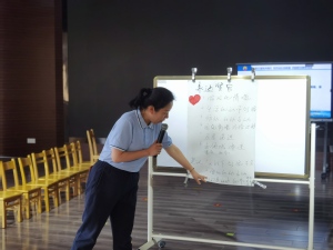 活动后,教师们根据自己的教学活动设计和执教过程中的实际情况,从活动目标定位、活动重难点把握、教学策略运用、幼儿学习情况等方面进行了说课交流和反思。