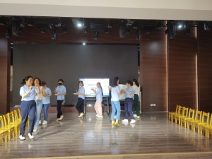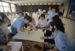 在音乐素养提升环节,老师们随机分三组用乐器和动作等形式来表现欢快的琵琶曲《欢沁》。三组教师在有限的十分钟时间内群策群力,根据音乐的节奏和性质,通过乐器合奏和表演,探索音乐的不同表现形式,感受集体创作音乐活动的乐趣。