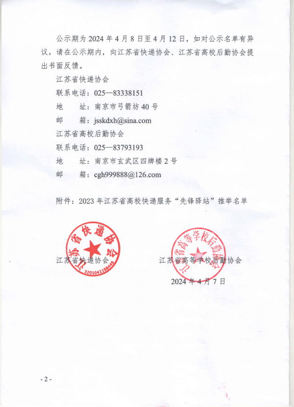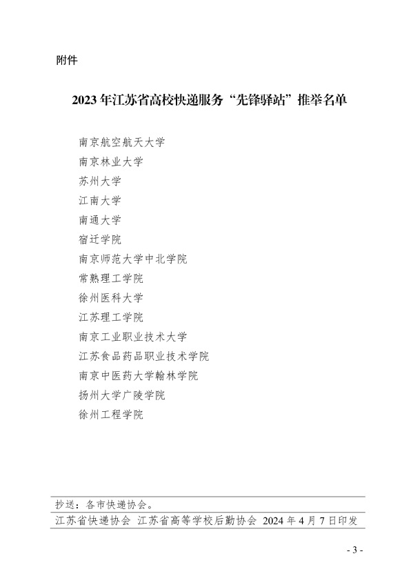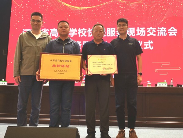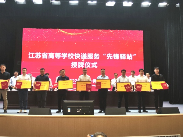 近日,江苏省高校快递工作交流暨“先锋驿站”表彰大会在南京林业大学召开,我校快递超市荣获江苏省高校快递服务“先锋驿站”称号,后勤集团副总经理李辉和校园服务中心相关负责同志参加会议。