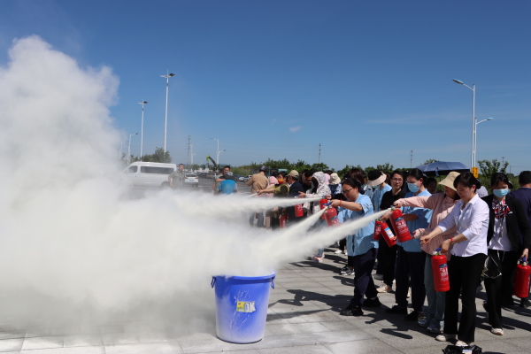灭火器实操现场,消防科老师首先给大家讲解、演示灭火器的使用方法:做到一提二拔三握四对五喷,即提起灭火器,拔掉保险销,握住喷管最前端,对准火焰根部,往下按压阀,对准火焰喷射。随后,参培人员分组上阵,逐个亲自体验,现场进行了灭火器实操演练。随着一次次的“火起”、“火灭”,员工们加强了对消火栓、灭火器的认识,熟练掌握了灭火器的正确使用方法。