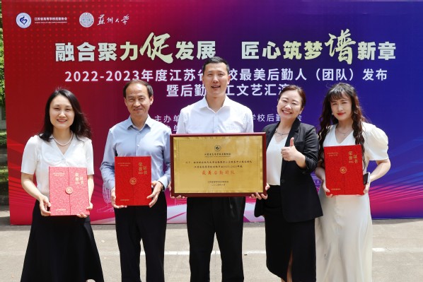 6月2日,江苏省高校后勤协会“2022-2023年度最美后勤人(团队)”表彰大会暨后勤职工文艺汇演在苏州大学举行,我校吴斌、刘如、陈英荣获“最美后勤人”称号,公寓服务中心服务团队荣获“最美后勤团队”称号。后勤集团副总经理颜萌及获奖代表参加了表彰大会,幼教中心节目《庚续初心 爱润童心》在后勤职工文艺汇演上展演。