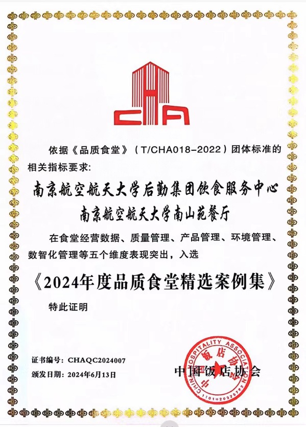 为深入贯彻党的二十大和全国两会精神,推动团餐产业品牌化、品质化、绿色化、节约化、数字化高质量发展,增强安全放心、营养健康、节约绿色、品质团餐服务供给,6月13日,由中国饭店协会主办的第五届中国团餐品牌大会在青岛召开。会上,天目湖校区南山苑餐厅在食堂经营数据、质量管理、产品管理、环境管理,数智化管理等五个维度表现突出,入选《2024年度品质食堂精选案例集》。