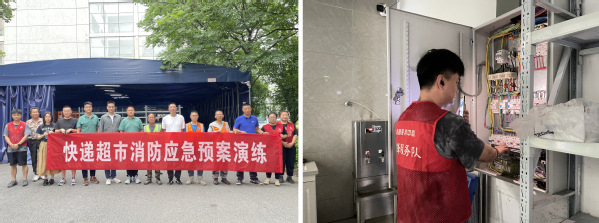 之后,中心在将军路校区快递超市组织了一场消防应急疏散演练。在演练过程中,员工们迅速响应,按照预定方案有序进行了火情报告、电源切断、人员疏散和初起火情扑救等操作。在疏散结束后,参演人员进行了灭火器实操培训,员工们纷纷上前体验,通过实际操作,更加熟练地掌握了初起火情的灭火技能。