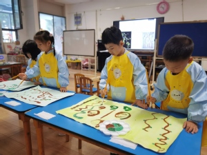 中班美术“跳舞的藤蔓”:王宁萍老师引导幼儿运用语言和肢体动作理解藤蔓舞动时的不同姿态,鼓励幼儿迁移线条、点彩等绘画经验表现自己心中的藤蔓。最终,孩子们创作出了栩栩如生、惟妙惟肖的不同藤蔓。