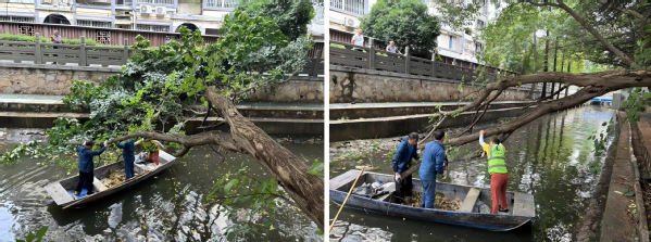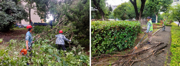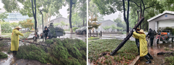 风雨就是集结号,险情就是动员令。校园服务中心在面对突发险情,积极作为,充分展现出了后勤人高度的责任感和使命感。后续,中心将持续关注天气变化,组织员工加强校园巡查,尤其是边角的巡查,对发现的枯死枝及时进行修剪,努力降低大风、暴雨带来的影响,并及时清扫雨后道路上积存的落叶、淤泥等杂物,为师生提供安全、舒适、洁净的校园环境。