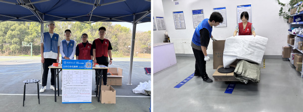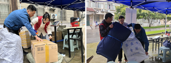 有人等烟雨,有人怪雨急。江南的雨水时有光临,是喜悦是诗意,但对快递超市而言,更多的是责任和担当。今年的两度毕业季,雨水绵绵,未曾停歇,同学们需寄之物以衣物、被褥、书籍为主。尽管快递超市已提前部署,搭建雨篷,设立防水设施,但为确保学子无忧,快递超市积极协调各企业,将车辆时刻停靠至摊位旁,便于打包后及时放送车内,最大限度降低雨水带来的潜在风险和隐患,保障每件包裹安全抵达。