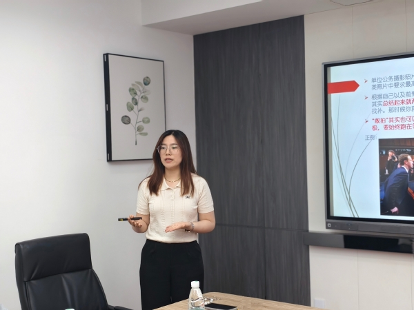 此次学习研讨由中心绿化技术员史欣玥担任主讲,她结合工作需要,围绕“公务摄影和风景摄影”两个视角,对会议、活动、自然风景等场景的摄影进行详细的分类讲解,并通过单图、多组等图片案例,让与会人员深刻感受到角度多样、画面选取、瞬间抓拍等摄影技巧的精妙之处。讲解中,史欣玥还特意挑选了一批存在问题的公务活动照片,请大家挑毛病、找问题,大家以自身的认知,并结合授课内容对存在问题的照片进行分析,找出问题所在,同时给出相应的改进建议。通过这种方式,不仅加深了大家对摄影技巧的理解,还提高了大家的实操技能。