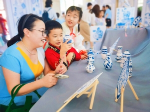 展览现场,琳琅满目的作品让人应接不暇,一幅幅生动形象的画作、一套套成系列的青花瓷作品、一张张活灵活现的剪纸作品吸引着各位领导嘉宾和家长们参观,他们在展品前驻足,倾听孩子们解说作品创作背后的故事,对本次活动中孩子所展现出的艺术创作力和热情表示称赞。