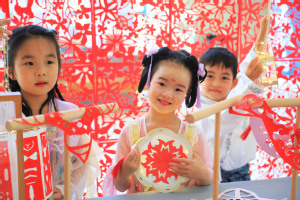 悠扬的童谣和快乐的剪纸舞吸引了大家的目光,舞台上“剪纸小精灵”们穿着传统的汉服、挥舞着灵巧的双手,将平时的学到的剪纸技能用舞蹈动作呈现出来,展现了南航幼儿园园本剪纸特色的魅力,大家在舞蹈中真切地感受到剪纸带来的快乐和收获。