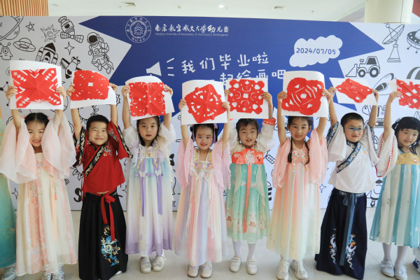 7月4日上午,南京航空航天大学幼儿园“把时光装进星辰大海”毕业生艺术展在南京航空航天大学大学生活动中心(明故宫校区)拉开序幕。南京航空航天大学离退休处副处长李洁,校图书馆党总支委员、原图书馆副馆长刘丽琳,中国书法家协会会员、校工会郭洪豹,中国儿童画形象大使、非遗传承人吕敏,以及南航后勤集团党委书记王国军,副总经理俞广波,总经理助理孙颖等领导嘉宾出席活动,幼儿园部分教职工、家长和幼儿参加。