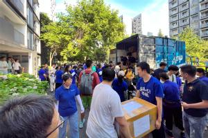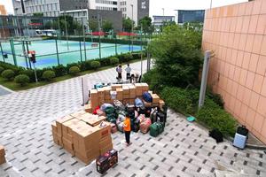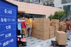 搬迁当日,集团总经理贡建伟、集团党委书记王国军和其他集团领导分别在三校区现场坐镇指挥,凌晨五点,当第一缕曙光还未刺破天际,天目湖校区服务中心、公寓服务中心、校园服务中心工作人员已悄然起身。他们无畏高温酷暑,投身于繁重的行李搬运工作中,他们不辞辛劳,共同完成了超过百余吨大件行李的安全装卸任务,确保了搬迁工作的顺利进行。三校区搬迁区域内设立了“能量补给站”免费提供清凉解暑的饮品,帮助大家驱散夏日的炎热与疲惫,准备了营养丰富的食品,为大家注入能量与活力,让搬迁之路充满温情与力量。公寓服务中心精心安排了入住信息普及工作,现场普及日常报修、热水供应、空调使用及其他宿舍日常管理服务相关信息,帮助即将入住的新同学们快速融入新环境。在各迁入楼宇,宿舍管理员现场维护搬迁秩序并作为贴身向导,为同学们提供指引服务,答疑解惑,助力搬迁学生顺利过渡,加速适应新的校园生活。