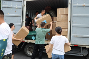 7月9日凌晨5点,中心129位参与搬迁的工作人员已整装待发,在迅速布置好工作任务后,开始了持续8个小时的高强度搬迁工作。面对这场时间紧、任务重的“高温战斗”,所有人齐心协力,争分夺秒,配合有条不紊,各环节有效衔接。整个搬迁过程中,中心员工按小组安排坚守在各个行李装箱点,耐心地帮助学生们搬运安置行李、清点数量、装载上车,提醒学生车辆信息。他们从打包、检查到装箱,全程“无缝对接”,细节满满,用最朴实的行动诠释了全心全意为学生服务的宗旨和优良的组织观念。近9000个几十斤的大箱子,2000多个编织袋,上千个行李箱,在短短8个小时之内,装上近百辆货车。恰逢酷暑,热浪朝天,为解决后顾之忧,中心在5堆场搭设20多顶帐篷,并提供免费解暑茶饮和防暑药品。