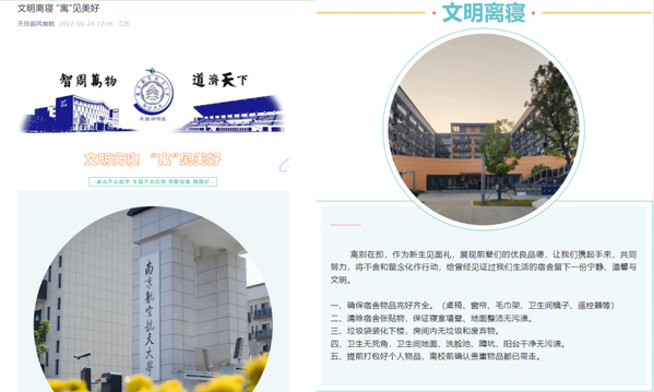 为倡导绿色环保,确保寝室干净整洁,中心在6月开展了“文明离寝”倡议活动,希望同学们离校时留下一间整洁如新的宿舍。虽然平时积攒的东西很多,但同学们都积极响应文明绿色号召,在宿管阿姨的协助下,践行人离屋净,将个人床位及物品腾空,保证公共设施完好无损坏,将自己对学校的爱、对公寓的不舍,通过实际行动表达出来。搬家当天,每个搬迁点附近都设有垃圾集中堆放点,由保洁阿姨及时打扫清运,确保搬迁过程中校园始终保持干净整洁的面貌。