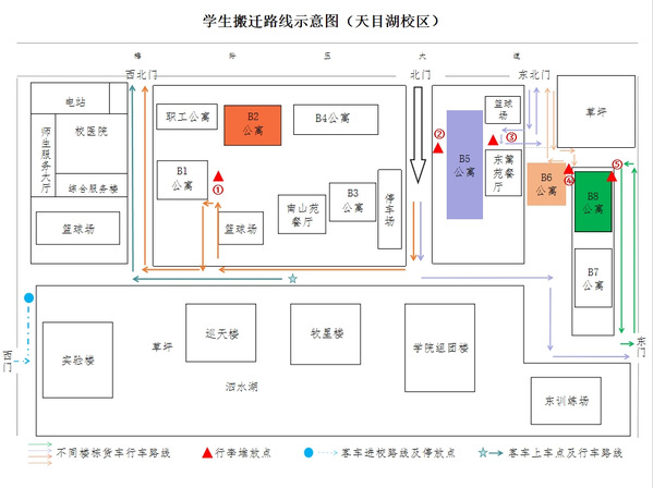“学生安全无小事”,为保证搬迁工作的顺利进行,天目湖校区服务中心做了大量准备工作,科学合理地布局了1855名搬迁学生、4栋出发楼宇、8栋到达楼宇、10个出发批次的搬家方案,并多次勘察现场、核对搬迁人数、车辆数量、严格规划行车路线及堆场布局,聚焦学生搬迁的需求和最关切的难点问题,逐项落实工作流程、运输车辆、人员分工、物资保障等,建立了搬迁工作通讯群,对过程进行精细化管理,明确责任、抓好落实、畅通信息,及时处理现场发生的各种问题。