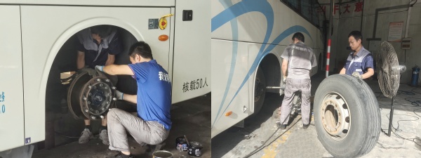 高温让修理车间仿佛变成了一个巨大的烤箱,温度达到50℃以上,修理工们却在其中全神贯注地检修着车辆。整个八月,他们要完成16辆大客车的二级保养,四轮保养共计需要拆装96个大客车轮胎,检查车辆底盘各安全部件,工作量繁重。