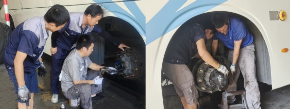 “上半年单车3-4万公里的饱和运行有些车辆的安全部件已经出现了异常状况,尤其是接下来高温天气容易导致车辆刹车、转向、轮胎爆胎等安全问题。我们必须尽快修好每一辆车,确保开学驾驶员能开着状态良好的班车迎接新生的到来。”主修师傅吉合亮一边擦着汗,一边说道。