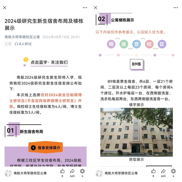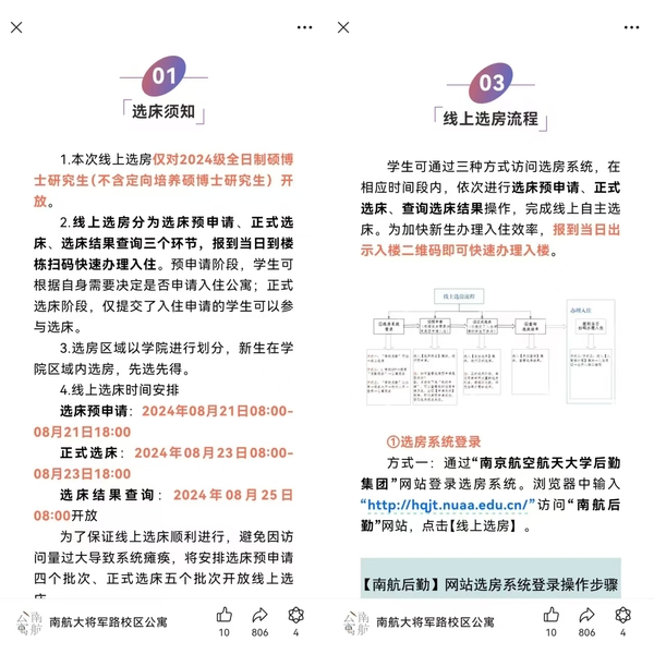8月中旬,线上选房工作全面开启。中心利用微信公众号提前发布选房相关信息,内容包含楼栋简介、选房流程、查询方式、收费标准等,信息公开透明、内容简洁明确。8月21日,线上选房系统正式开放,不少学生早早便打开系统,提前登录,生怕错过心仪房间。选房期间,中心安排专人全天跟踪选房情况,对学生的疑问第一时间予以解决,得到学生认可。参与线上选房的新生来报到时,只需出示入住二维码便可一键办理入住。
