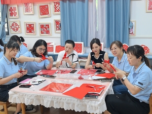 本学期我园继续聘请非遗传人,美术学博士吕敏为我园的日常剪纸指导老师。为了提升孩子们的剪纸技能,更好地传承和发扬剪纸文化,吕敏从理论和实践指导教师们进行剪纸专项培训,旨在提升教师对孩子剪纸活动的有效指导,更好的服务幼儿,支持幼儿。