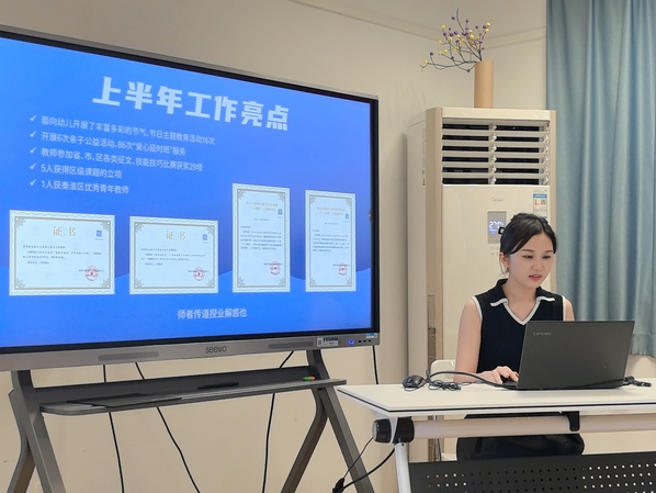 新学期工作会上,陈慧云先向全体教师送上最真挚的节日问候和祝福,同时也给全体教职员工在上学期取得的成绩和工作送上一份肯定和一份关怀。接着,她以“教育家精神”为主线,以“做好新时代教育的加、减、乘、除法”为题与大家分享探讨了作为幼教人肩负的使命:“加”上奉献和学习的时间,让教育情怀更深厚一些;“减”去浮躁和惰性,让教育实践更高效一些;“乘”以创新和实践的智慧,让教育能力更强一些;“除”去私心杂念,让教育初心更纯粹一些。
