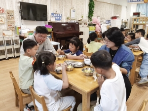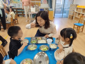膳食委员会家长进入各班级,亲身体验班级餐前活动、卫生消毒、分餐流程等,体验完整的进餐流程。通过直观感受幼儿园的膳食质量和幼儿进餐情况,家长们对饭菜的口味、口感、色泽、营养搭配等方面均表示认可。
