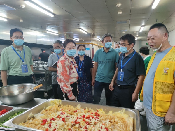 检查组深入服务保障工作一线,详细询问食品原料保障、菜品加工和售卖价格、学生及员工住宿、违规使用电器检查、供电供水保障、假期值班值守安排等情况,仔细检查原料库房、充电设施设备、幼儿食堂等重要点位,积极督办明故宫校区奋飞园廊架改造、二食堂洗碗间出口地面溢水改造等项目。