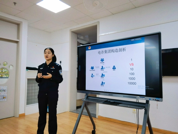 为了切实提高教职工的防诈反诈意识,江雨甜对全体教职工开展进行了反诈宣传讲座。她通过ppt从“什么是电信诈骗”“电信诈骗的常见形式”“如何防范电信诈骗”等几个方面展开了重点讲解和宣传,例举真实案例让大家了解目前诈骗的多种典型诈骗方式,帮助教职工认识各种电信诈骗类型,加强教职工防范电信诈骗的能力。