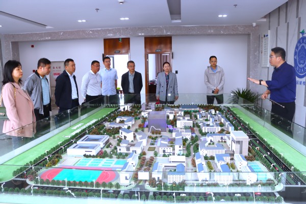 缪长宗对秦光宇一行表示热烈欢迎,邀请秦光宇一行参观了天目湖校区建设规划沙盘,介绍了学校“一校四区一港”的建设布局。随后带领大家参观了天目湖校区食堂、公寓等保障设施。