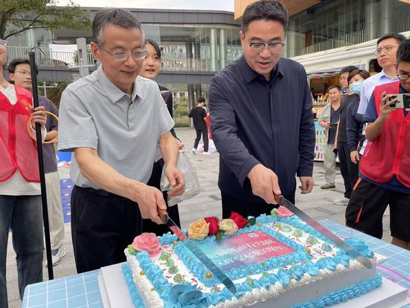 会后,张海艮、缪长宗和秦光宇一行共同参与了天目湖校区72周年校庆美食节,与现场师生分享校庆蛋糕。