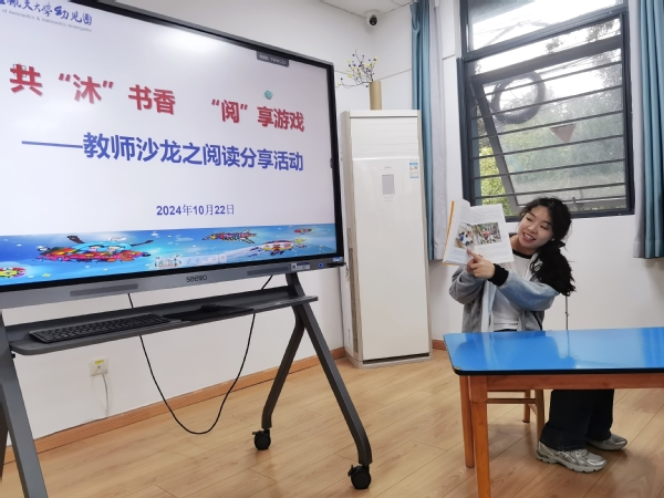 书香润心灵,阅读促成长。为了加强教师对幼儿自主性游戏内涵的深入理解,促进幼儿园课程游戏化的高质量发展,10月22日,南航幼儿园开展了“共‘沐’书香,‘阅’享游戏”教师沙龙活动,围绕前期阅读的《自主游戏——成就幼儿快乐而有意义的童年》一书,结合实际工作情况,进行了第一期阅读体会分享,幼儿园全体教师参加。