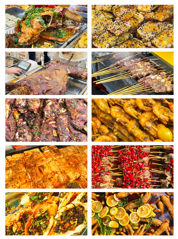 现场各类美食琳琅满目,牛羊肉系列、特色小吃、甜品饮品等齐聚一堂,多达 200 余款。食堂师傅们精心制作出一道道美味佳肴,师生们纷纷前来品尝这舌尖上的盛宴。从烤全羊的滋滋冒油,到卤羊蹄的鲜香麻辣,再到酸汤羊肉粉、手抓羊肉饭等,通过煎炸蒸煮等多种烹饪方式,呈现出各色暖心暖胃的美食,尽显饮食文化的魅力。