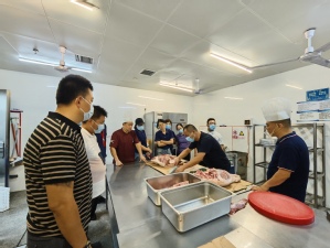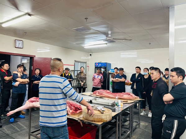 培训围绕猪肉切割处理的规范流程展开,详细讲解了不同部位猪肉的基础知识,并重点对淋巴肉与普通肥肉的鉴别技巧进行了说明。在培训过程中,讲师通过展示淋巴肉与普通肥肉的实物对比,以及它们在颜色、质地、分布位置等方面的差异,帮助参培人员掌握精细鉴别技巧,使参培人员能够更加准确地区分两者,从而在实际工作中避免误用,确保食材的安全性。同时,讲师还结合实际操作,演示了正确切割和处理猪肉的方法。参培人员纷纷表示,通过培训,他们不仅提高了对淋巴肉的识别能力,还掌握了切割猪肉的正确操作方法,他们将把所学知识应用到实际工作中。