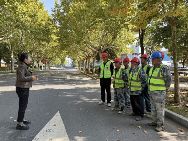 为确保演练过程安全有序,将军路校区绿化卫生班组提前在演练现场布置了警戒线,并完成了各项准备工作。随后,主管李变对参加演练人员进行了全面深入的培训,内容涵盖演练流程、安全注意事项及应急处置要点等,确保每位参演者都能明确自身职责,熟悉操作流程。