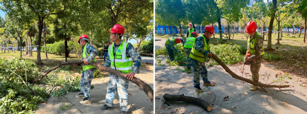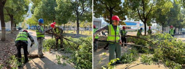 随着演练指令的下达,参演人员迅速进入状态,严格按照专项预案的分工和事件处置规程展开行动。他们熟练运用园林机械对倒伏的树木及树枝进行切割、清理与搬运。整个演练过程中,应急反应迅速,人员配合默契,险情处置得当,各环节衔接紧密,最终圆满完成了演练任务。