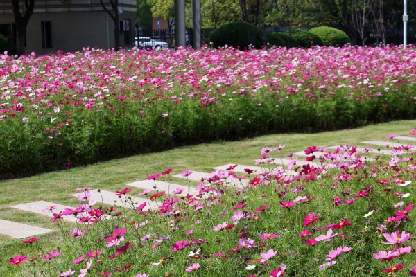 为深入贯彻落实后勤集团党委“我为师生办实事”主题活动,推动相关工作的常态化开展,进一步提升师生员工的幸福感和获得感,校园服务中心对将军路校区大西门停机坪约20000平方米区域进行了重新规划布局,精心打造了10000平方米的格桑花海景观。格桑花以其丰富多彩的花色和幸福美好的寓意,为校园增添了一道亮丽的风景。