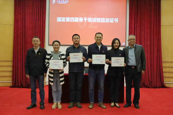 会上,贡建伟和张海艮为第四期骨干培训班学员代表颁发结业证书。