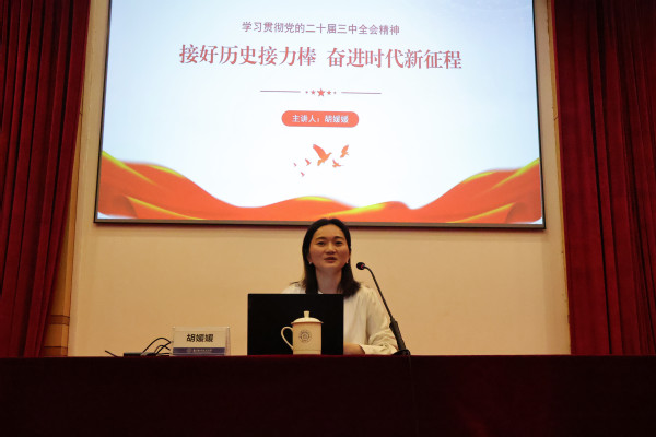 开班式结束后,我校学习宣传党的二十届三中全会精神校内宣讲团成员、马克思主义学院副教授胡媛媛老师为大家讲授了培训班第一课,胡老师以《学习贯彻党的二十届三中全会精神 接好历史接力棒 奋进时代新征程》为题,从历史的维度分析了三中全会的重要性,从现实的角度分析了二十届三中全会审议通过的《中共中央关于进一步全面深化改革、推进中国式现代化的决定》的重要意义,内容丰富,分析深入,既有理论高度,又有实践深度,便于学员们更加深入学习、理解党的二十届三中全会精神,并将此转化为推进后勤服务保障工作的强大力量,落实到实际工作中。