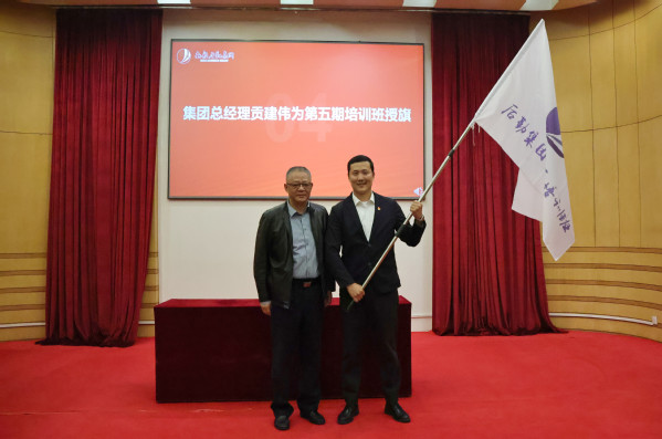 开班式上,集团总经理贡建伟代表集团为第五期骨干培训班授旗。