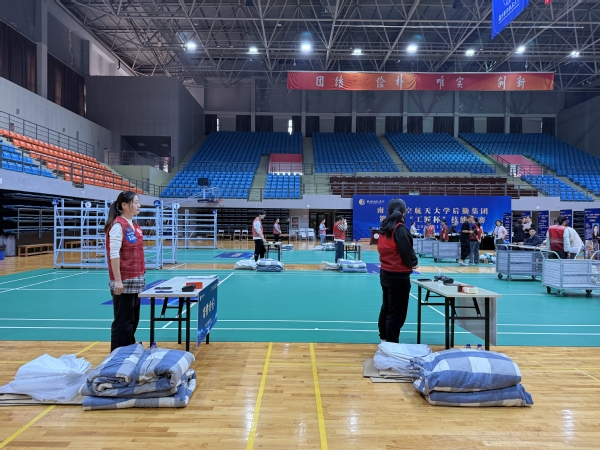 为持续提升快递超市的服务质量和业务水平,打造一支集高素质与高技能于一身的快递服务队伍,为全校师生提供更加优质的专业服务,11月16日下午,后勤集团第二届“工匠杯”技能比赛——快递技能比赛在将军路校区体育馆举行。江苏省高等学校后勤协会副会长兼秘书长黄在宇、南京市快递协会秘书长王湖云、菜鸟校园城市经理唐建森及集团全体领导莅临比赛现场。