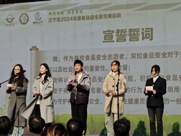 作为我校学生志愿者代表,李勇涛同学深感荣幸。他在宣誓中表示,南航学子将积极响应“江宁督督”的号召,发挥自身优势,传播食品安全知识,提高自我防范意识,为守护师生舌尖上的安全贡献青春力量。